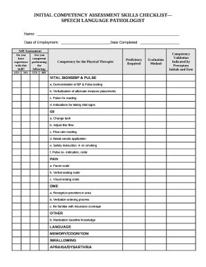 speech language pathologist skills checklist